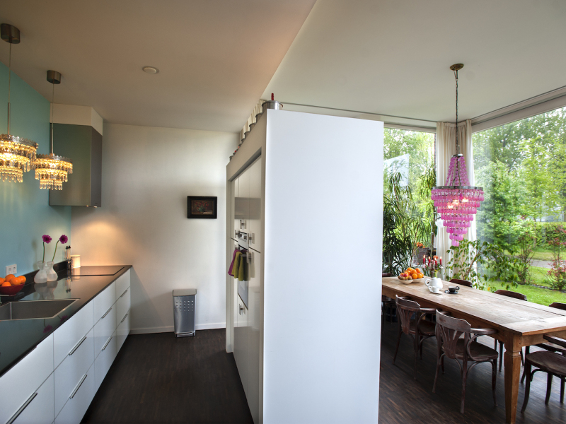 Het is een licht en luchtig huis geworden die door ons als bewoners en bezoekers als zeer prettig ervaren wordt. We hebben veel rekening gehouden in het ontwerp met ons welbevinden en de invloed van de omgeving op onszelf. Kleuren, vormen, materialen, (dag) licht en verhoudingen spelen daarbij een grote rol.